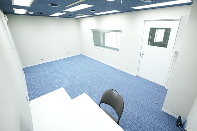 ▲ 2F 控室: 1Fメインスタジオが見える控室です。(1Fメインスタジオご利用のお客様のみご予約可能です。)